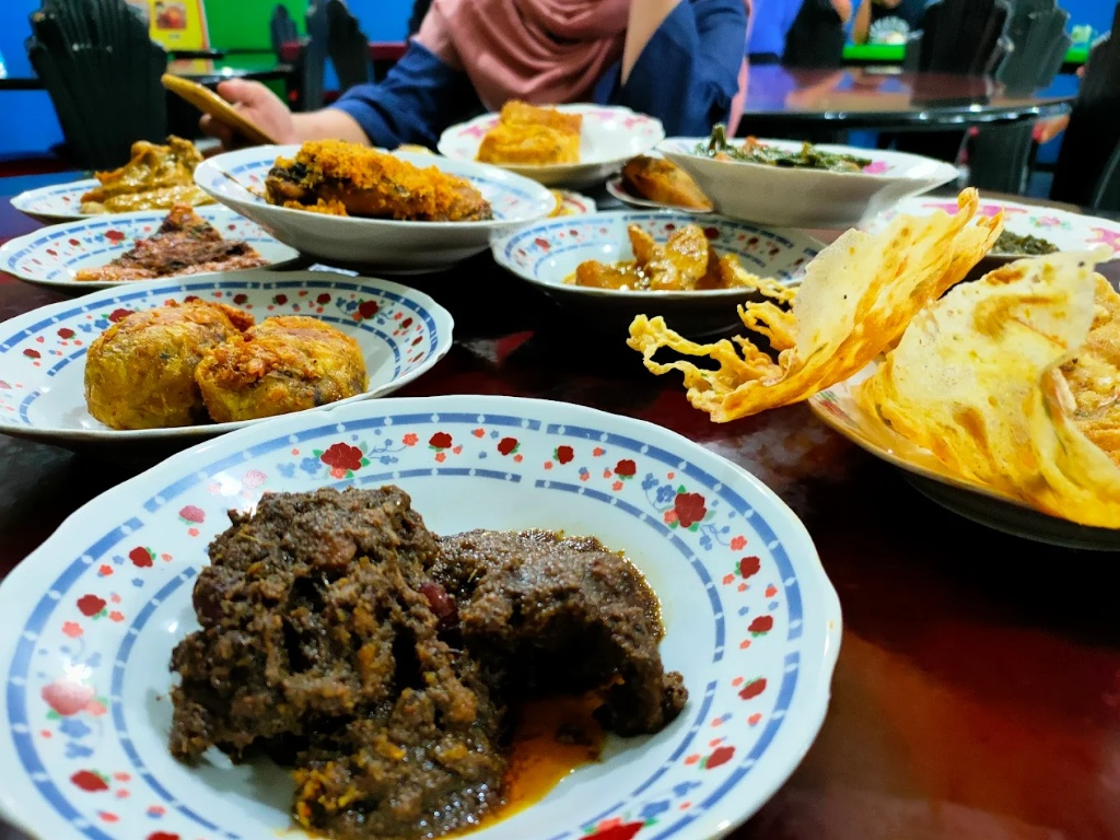 Rendang sapi empuk dengan bumbu pekat yang dimasak berjam-jam hingga meresap sempurna.